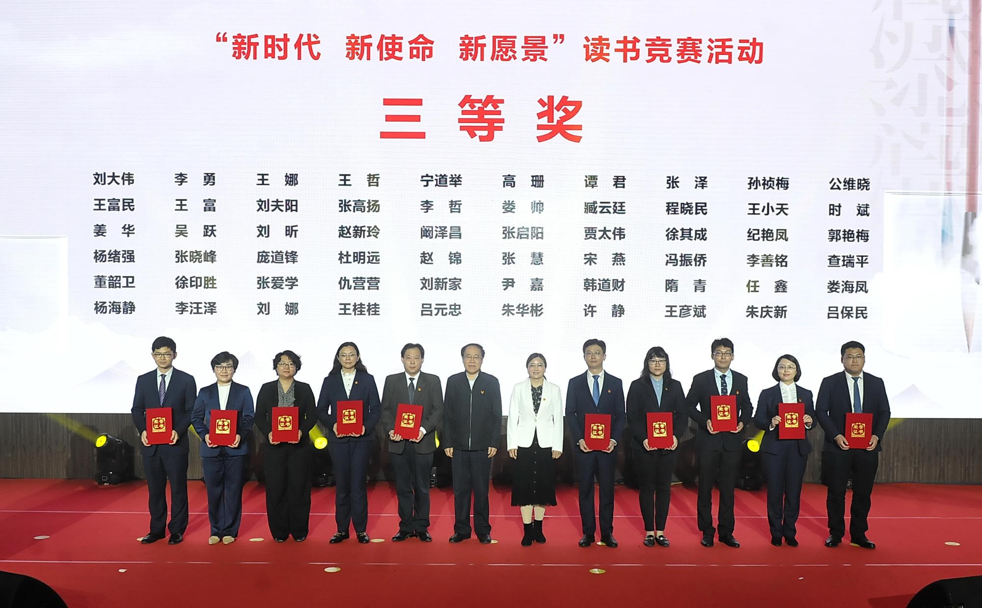 省委黨史學習教育領導小組第十五巡回指導組成員、省市場監管局標準化處一級調研員趙秀水,省委黨史學習教育領導小組第十五巡回指導組成員、省國資委黨委組織與統戰工作處副處長、三級調研員龐愛華為獲獎代表頒獎。