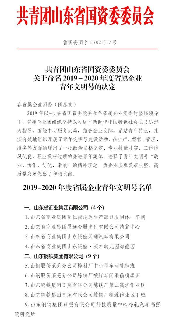 近日,共青團(tuán)省國(guó)資委委員會(huì)公布了《關(guān)于命名2019-2020年省屬企業(yè)青年文明號(hào)的決定》,集團(tuán)所屬的明仁福瑞達(dá)生產(chǎn)部口服固體一車(chē)間、易通金服支付有限公司清算中心、山東銀座天通汽車(chē)有限公司、山東銀座·英才幼兒園海德園榮獲“省屬企業(yè)青年文明號(hào)”榮譽(yù)稱號(hào);銀座商城股份有限公司玉函分公司等9家單位均通過(guò)“省屬企業(yè)青年文明號(hào)”復(fù)查。