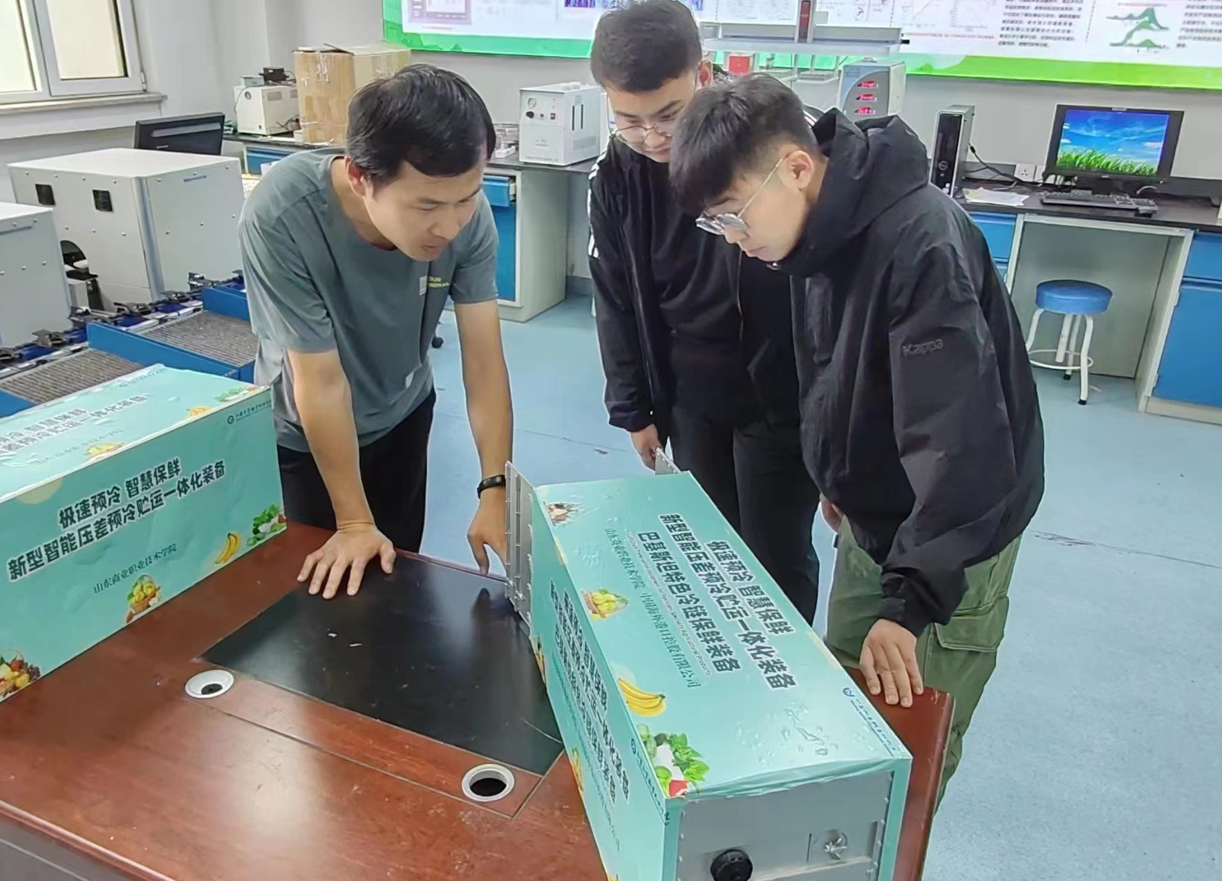 其中,由山東省農(nóng)產(chǎn)品貯運(yùn)保鮮技術(shù)重點(diǎn)實(shí)驗(yàn)室推薦,郭風(fēng)軍、陳東杰、張長峰指導(dǎo)的“極速預(yù)冷 智慧保鮮—新型智能殺菌型壓差預(yù)冷貯運(yùn)一體化裝備”項(xiàng)目從2.7萬件作品中脫穎而出,獲省級特等獎,實(shí)現(xiàn)學(xué)校該項(xiàng)賽事特等獎零的突破。