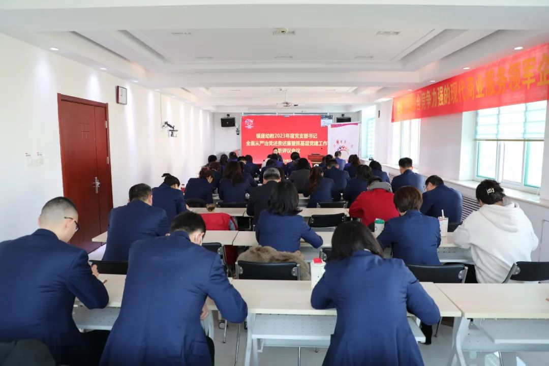 2月26日,銀座幼教召開2023年度黨支部書記履行全面從嚴治黨述責述廉暨抓基層黨建工作述職評議會議,銀座幼教黨委書記、董事長袁霞主持會議并講話,魯商集團組織人力資源部有關人員到會指導。