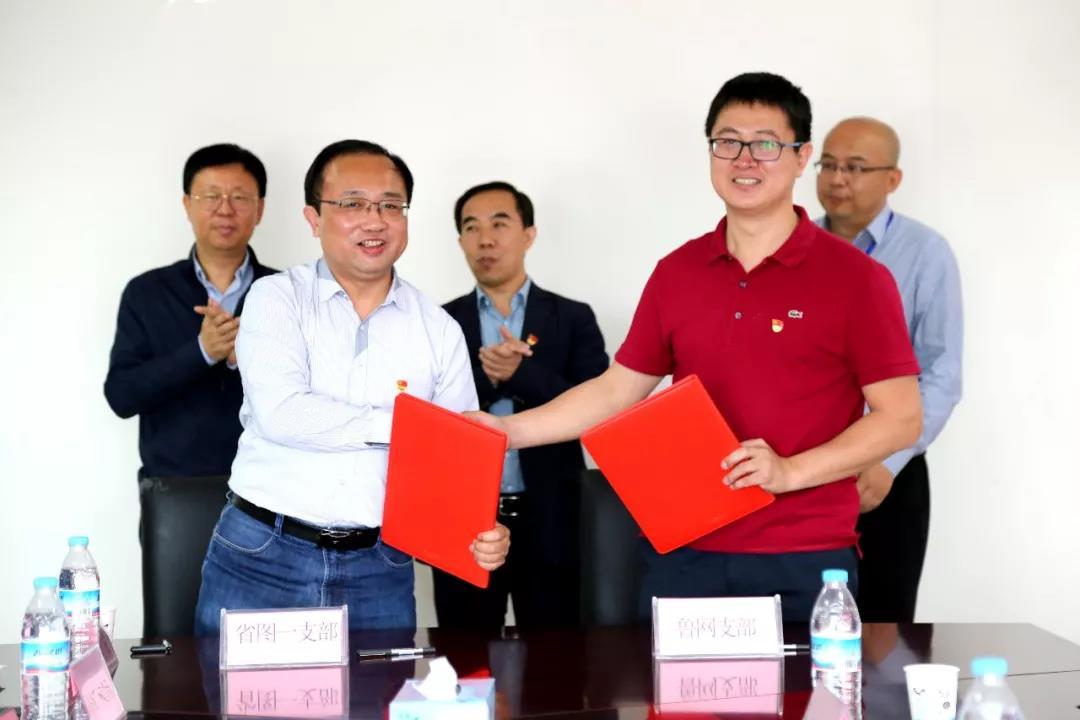 在魯網黨支部與省圖書館第一黨支部結對共建活動中,共建雙方就各自黨支部工作情況進行了介紹,并本著“學習交流、共同提高、雙向受益”的原則,由省圖書館第一黨支部書記吳金敦與魯網黨支部書記陶克簽訂結對共建協議。賈慶華、龐道鋒為共建雙方授牌。