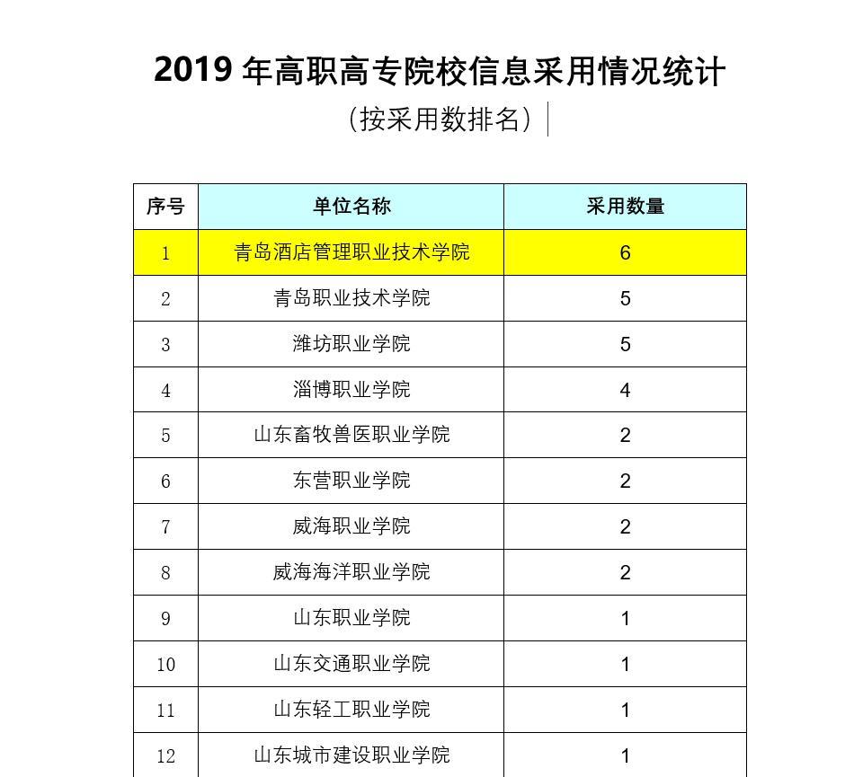 1月10日,省教育廳辦公室公布2019年度信息報送情況,青島酒店管理職院2019年被省教育廳采納信息6篇,在公布的全省高職高專院校中排名第一。