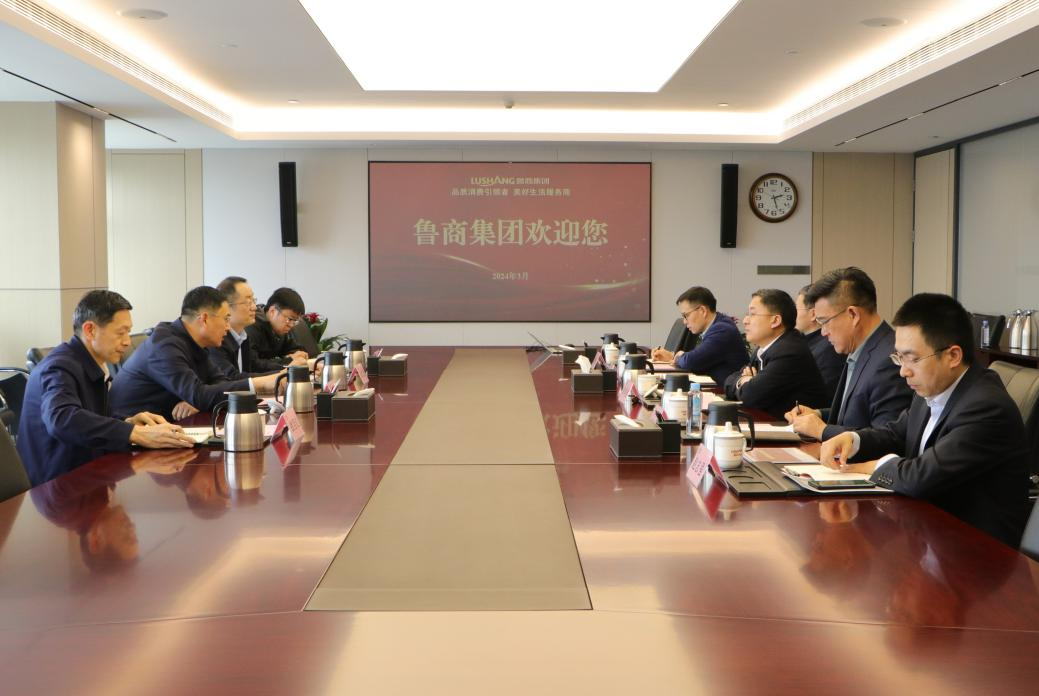 3月27日,日照市國資委黨委書記、主任郭曉民,國動辦黨組書記劉立宏到訪魯商集團,集團黨委副書記、董事、總經理朱華建熱情接待并舉行座談。