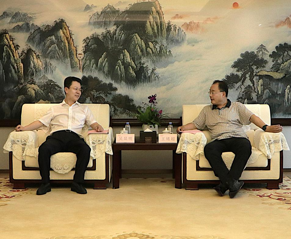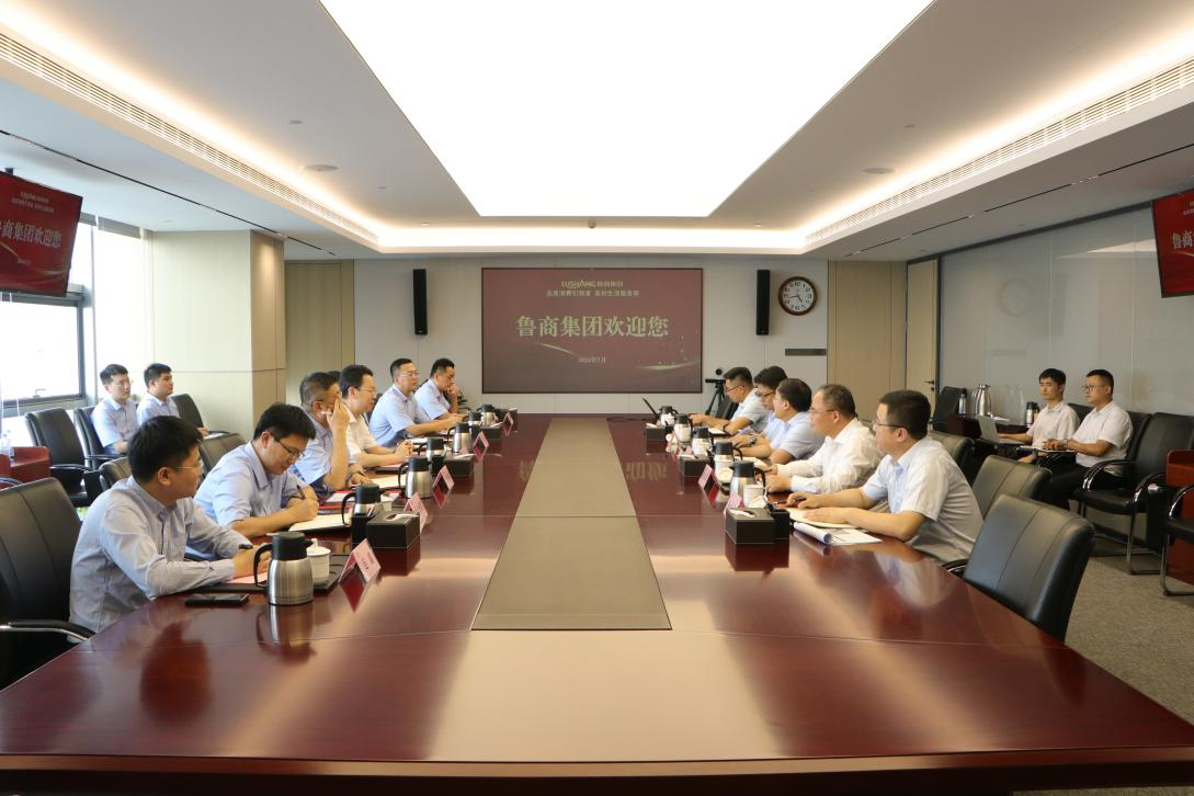 7月9日,魯商集團黨委書記、董事長王緒超在濟南會見到訪的青島銀行黨委副書記、行長吳顯明,集團黨委副書記、董事、總經理朱華建參加活動并組織座談。