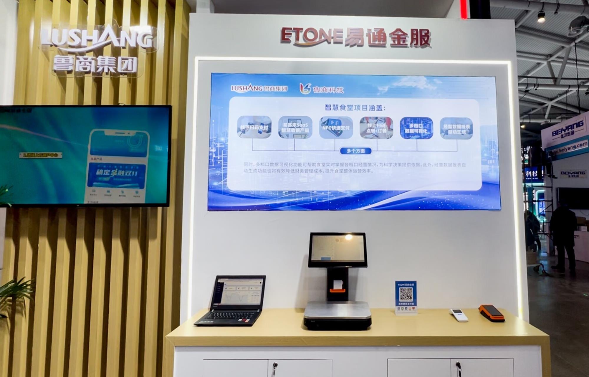 智慧食堂展區(qū)展示了線上掃碼點餐/訂餐、線下掃碼支付、NFC快速支付、易客來SaaS智慧收銀產(chǎn)品、多檔口數(shù)據(jù)可視化、經(jīng)營數(shù)據(jù)報表自動生成等多個方面內(nèi)容,將食堂管理數(shù)字化、線上化,極大提高了食堂管理效率。通過設置展區(qū),為智慧食堂項目宣傳搭建了溝通宣傳的橋梁,開展不久便有十多家企業(yè)前來咨詢洽談,收獲頗豐。