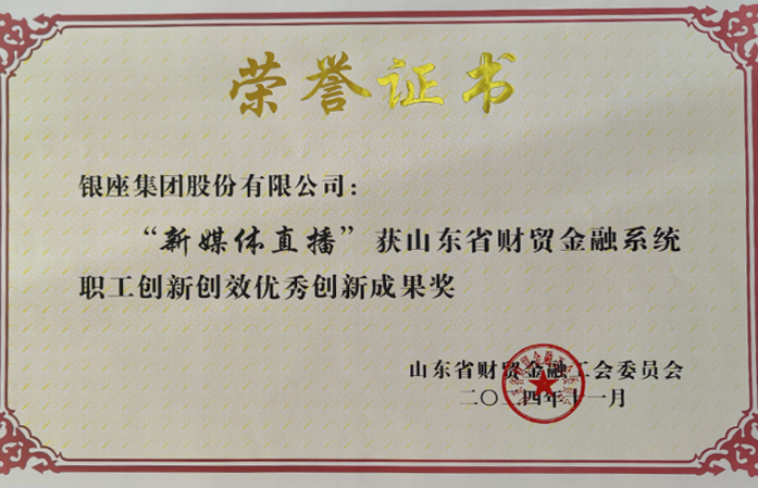 為培育發展新質生產力,扛牢“走在前、挑大梁”的使命擔當,銀座集團不斷加大科技投入,完善人才培養發展機制,在省財貿金融工會開展的全員創新競賽活動中,銀座集團“新媒體直播”榮獲山東省財貿金融系統職工創新創效優秀創新成果獎。