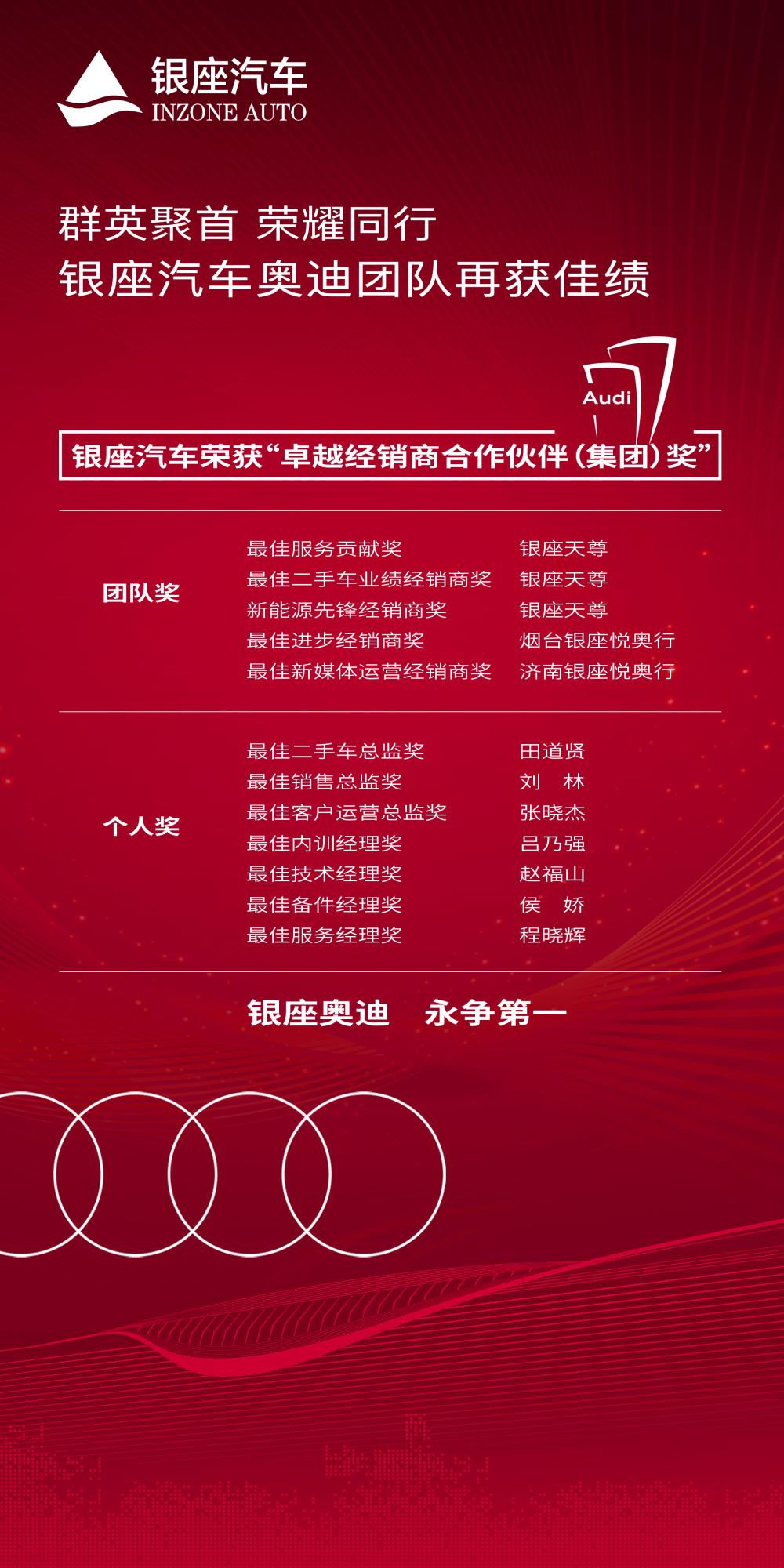 銀座汽車獲一汽奧迪卓越經(jīng)銷商合作伙伴(集團(tuán))獎(jiǎng)