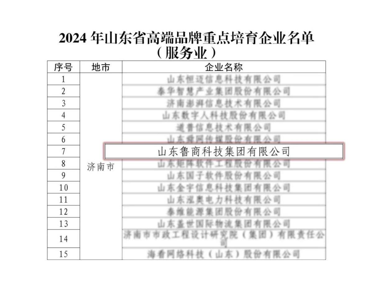 近期,山東省市場(chǎng)監(jiān)督管理局發(fā)布2024年山東省高端品牌重點(diǎn)培育企業(yè)名單,魯商科技成功入選。