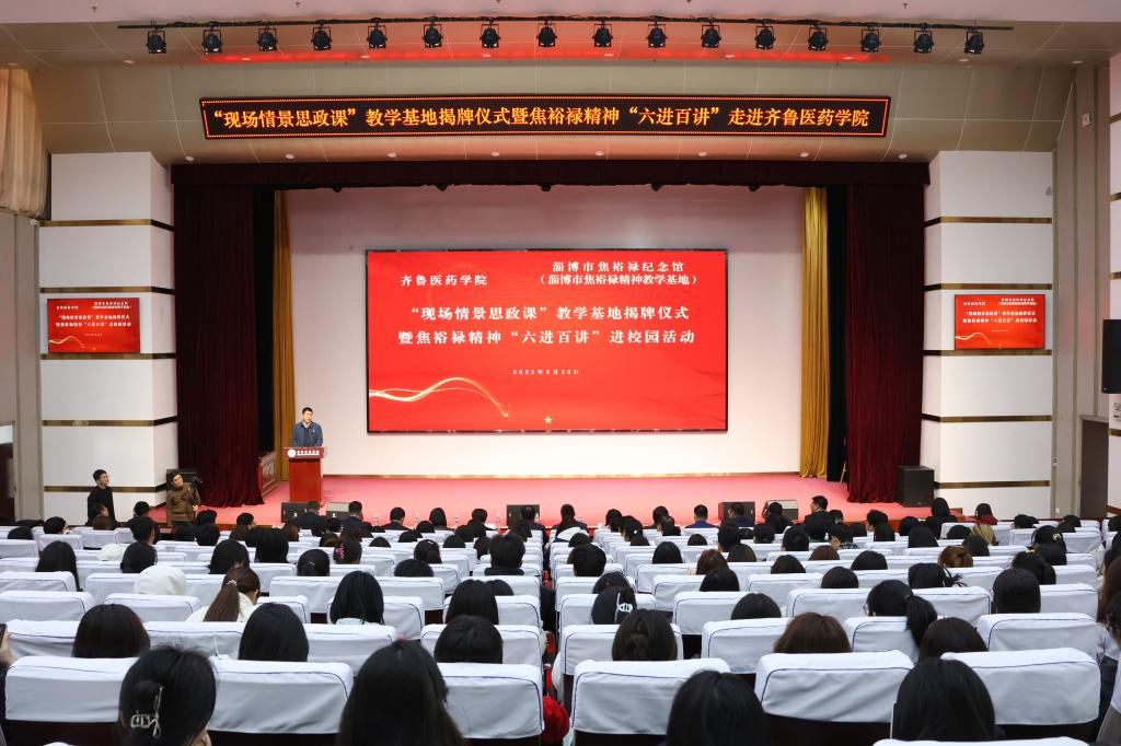 為弘揚(yáng)焦裕祿精神,傳承紅色基因,近日,齊魯醫(yī)藥學(xué)院與淄博市焦裕祿紀(jì)念館“現(xiàn)場(chǎng)情景思政課”教學(xué)基地揭牌儀式暨焦裕祿精神“六進(jìn)百講”進(jìn)校園活動(dòng)成功舉行。