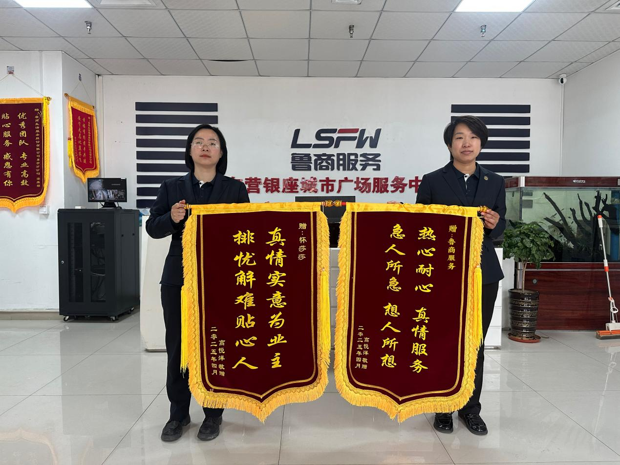 “感謝咱們服務(wù)中心的積極救助,避免了我們家的財(cái)產(chǎn)損失?!?月17日下午,東營(yíng)銀座廣場(chǎng)15號(hào)樓業(yè)主高先生手持兩面錦旗來(lái)到服務(wù)中心,向管家懷莎莎和服務(wù)中心全體員工表達(dá)謝意。