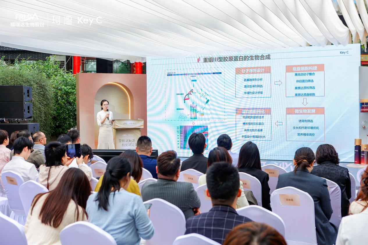 近日,福瑞達(dá)生物股份旗下品牌珂謐KeyC舉辦2025重組膠原蛋白技術(shù)發(fā)布會(huì)暨珂謐KeyC穿膜膠原新品首發(fā)式。會(huì)上,珂謐研發(fā)團(tuán)隊(duì)重磅發(fā)布行業(yè)首創(chuàng)的穿膜膠原技術(shù),相比傳統(tǒng)膠原皮下滲透率提高27.5倍,實(shí)現(xiàn)行業(yè)顛覆性創(chuàng)新,標(biāo)志著我國重組膠原蛋白技術(shù)研究水平再上新臺(tái)階。
