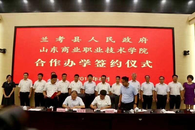 與蘭考、蒙陰縣人民政府開展合作,為精準扶貧注入職教能量。學校2016年7月與蘭考縣人民政府簽署了戰略合作協議,根據合作協議,山東商院將在5—10年的時間內幫助蘭考縣做好職業教育發展等相關工作,在學校申報、建設、院系設置、專業設置、教學管理、師質培養、學科建設等方面提供專業性指導。2018年6月,學校與蘭考縣人民政府簽訂蘭考職業技術學院托管協議,依據開放式、全鏈條、一體化基本辦學思路,按照整體設計、分步實施的基本要求,雙方將形成共建共管共享機制,統籌各方優質資源,充分發揮各方面主動性,吸引各方人才,為蘭考的區域經濟快速發展提供技術和人才支撐,助推蘭考富起來、強起來。2018年6月,奮進新時代,中華美德職教行——青年紅色筑夢之旅活動在校啟動,啟動儀式上,學校與蒙陰縣人民政府簽署略合作協議,雙方將在“蒙陰蜜桃”品牌、推進科技創新及成果轉化、合力推進脫貧攻堅、聯合開展人才培養、組建鄉村振興學院、開展“沂蒙精神”教育等方面展開合作。2018年7月學校當選 “全國職業院校精準扶貧協作聯盟”副理事長單位,將會在職業院校助力精準扶貧中發揮更大作用。