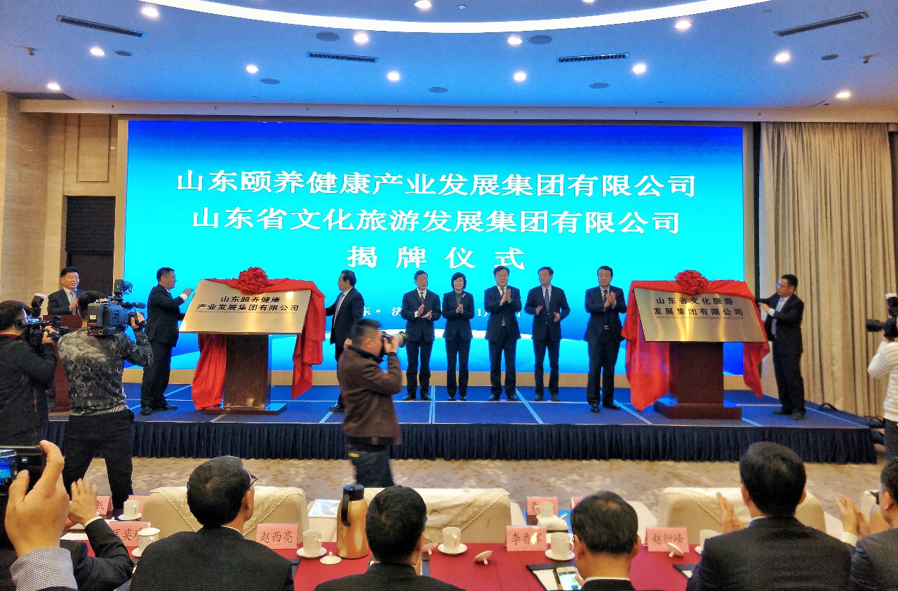 11月30日上午,山東省文化旅游發展集團有限公司(簡稱山東省文旅集團)、山東頤養健康產業發展集團有限公司(簡稱山東頤養集團)揭牌儀式在山東大廈舉行。省國資委黨委書記、主任張斌出席儀式并講話,魯商集團黨委書記、董事長高洪雷,魯商集團黨委副書記劉守亮共同為山東省文旅集團揭牌。