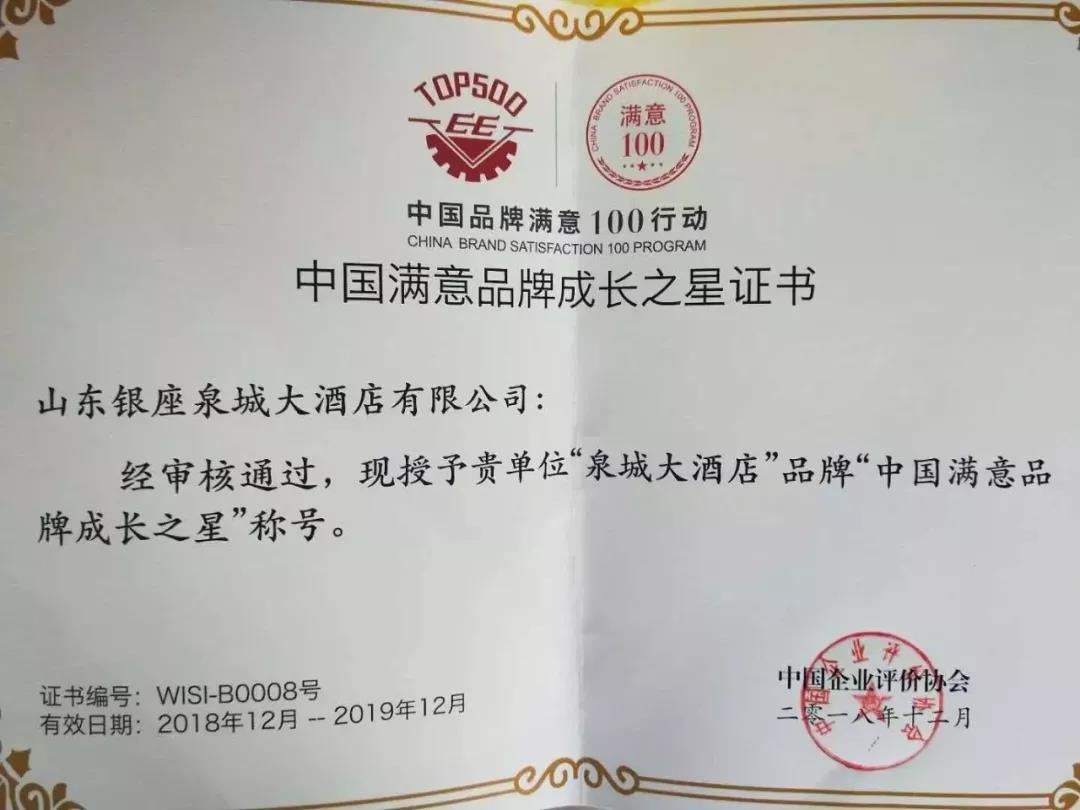 日前,首屆中國滿意品牌高峰論壇在北京釣魚臺國賓館舉行,32家知名企業品牌榮獲“中國滿意品牌”稱號,銀座泉城大酒店等13家企業品牌獲得“中國滿意品牌成長之星”稱號。