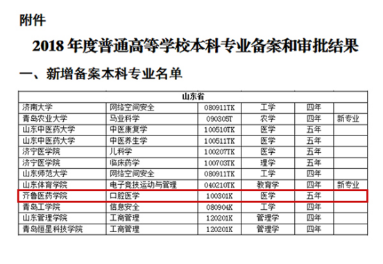 近日,教育部公布了2018年度普通高等學(xué)校本科專業(yè)備案和審批結(jié)果,齊魯醫(yī)藥學(xué)院申報(bào)的口腔醫(yī)學(xué)(五年制、醫(yī)學(xué)學(xué)位)本科專業(yè)獲批設(shè)置。