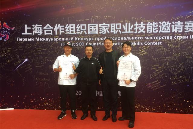 11月10日—13日,2019年首屆上合組織國家職業(yè)技能大賽在威海職業(yè)學(xué)院舉行。青島酒店管理職院選派韓國彗田大學(xué)留學(xué)生金男泰獲得烹飪(西餐)國際組賽項一等獎,西餐工藝專業(yè)學(xué)生韓昊獲得烹飪(西餐)國內(nèi)組賽項二等獎。