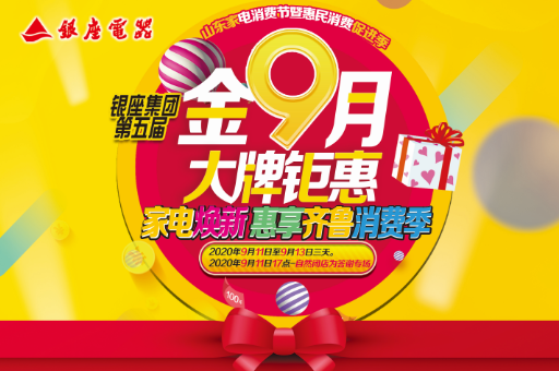 銀座電器承辦此次活動,并于9月11日至13日在全省經營范圍內開展銀座集團第五屆“金九月”大牌鉅惠——家電煥新、惠享齊魯消費季、婚慶大禮包等活動,以優品推薦、套購返券、價格直降、夜場專享等形式,為廣大顧客提供一場家電盛宴。