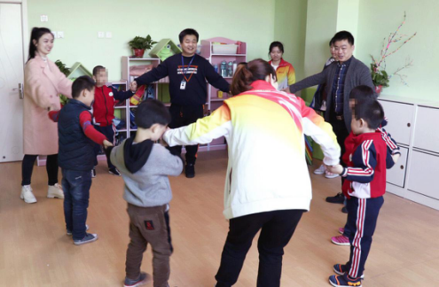 康復(fù)中心的老師們還帶領(lǐng)福瑞達(dá)美業(yè)Dr.Alva璦爾博士團(tuán)隊(duì)走進(jìn)教室,一起體驗(yàn)特殊教育課堂活動。在老師的引導(dǎo)下,孩子們與大家一起做游戲,零距離接觸。這也讓大家深深感受到孩子們對于他們的歡迎和喜愛。