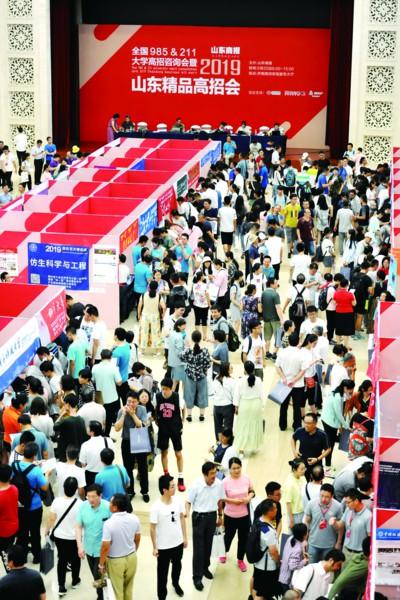 6月25日,由山東商報主辦的全國985&211大學高招咨詢會暨2019山東精品高招會在濟南南郊賓館舉行,現場吸引了省內大量高分考生及家長前來咨詢。