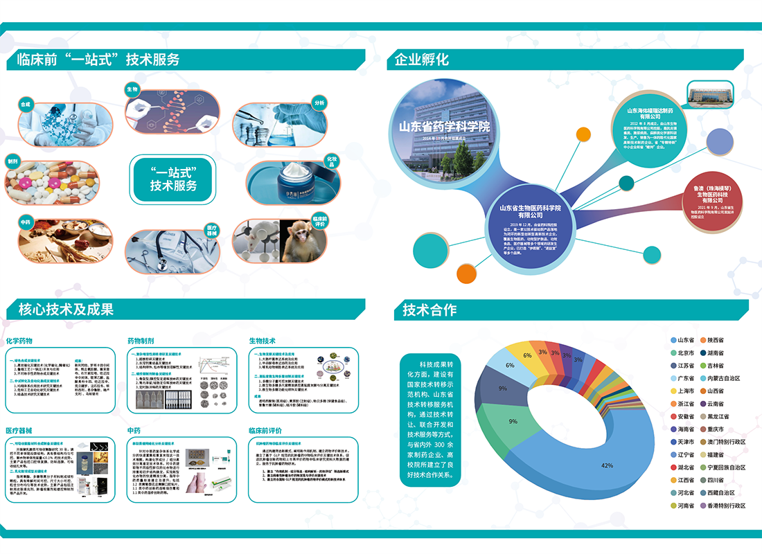 建設國家技術轉移示范機構、山東省技術轉移服務機構,提供新藥研發臨床前“一站式”技術服務,通過技術轉讓、聯合開發和技術服務等方式,與省內外300余家制藥企業建立了良好合作關系。